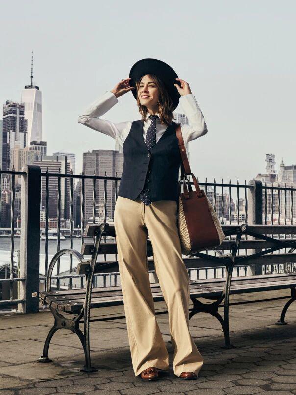 她从不把配饰当点缀,而是当作一种表达。对配饰的喜欢也源自自己钟爱的风格:我不想太过浮夸,但我确实想穿自己喜欢的衣服。黑白两色的套装,你可以随意搭配。我可以戴很多帽子,或者穿一件配宽腰带的外套。