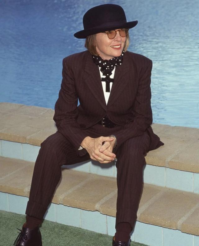 那时的好莱坞,还在用高跟鞋、紧身裙、红唇来塑造性感。黛安·基顿却反其道而行之,穿着男人的衣服,却比任何人都更有魅力。