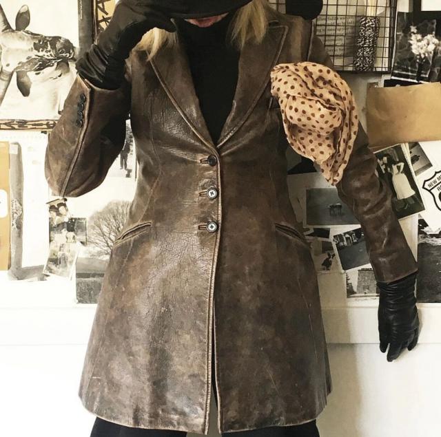 她的穿搭里,Ralph Lauren刷脸的次数真的有点多。这件Ralph Lauren的皮衣,工龄超过30年。▼