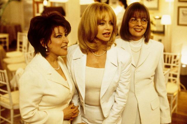转眼间到了90年代,她在电影《前妻俱乐部》中经典的白色西装造型,贡献了影史上精彩的一幕。最右为黛安。▼