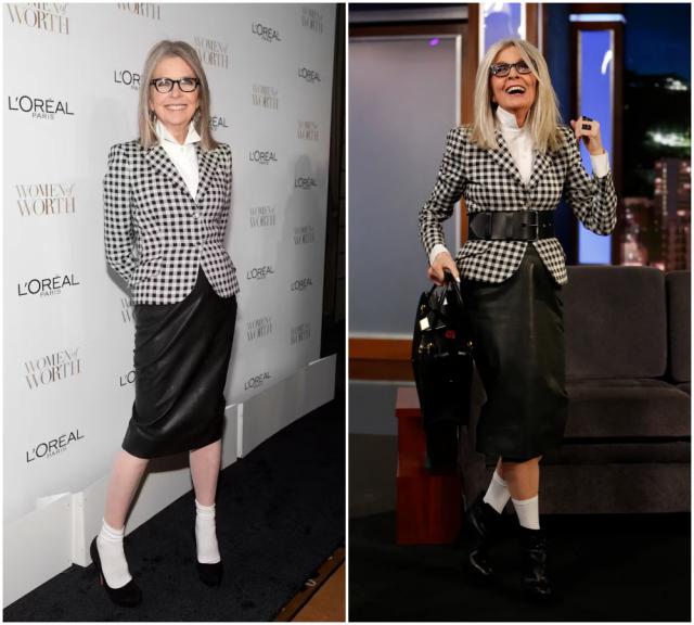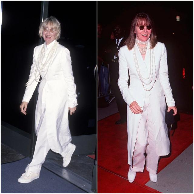 1978年奥斯卡颁奖典礼上,她凭借在电影《安妮·霍尔》的精彩表现,拿下奥斯卡最佳女主角奖。着装方面,也是巧妙地呼应了角色。▼