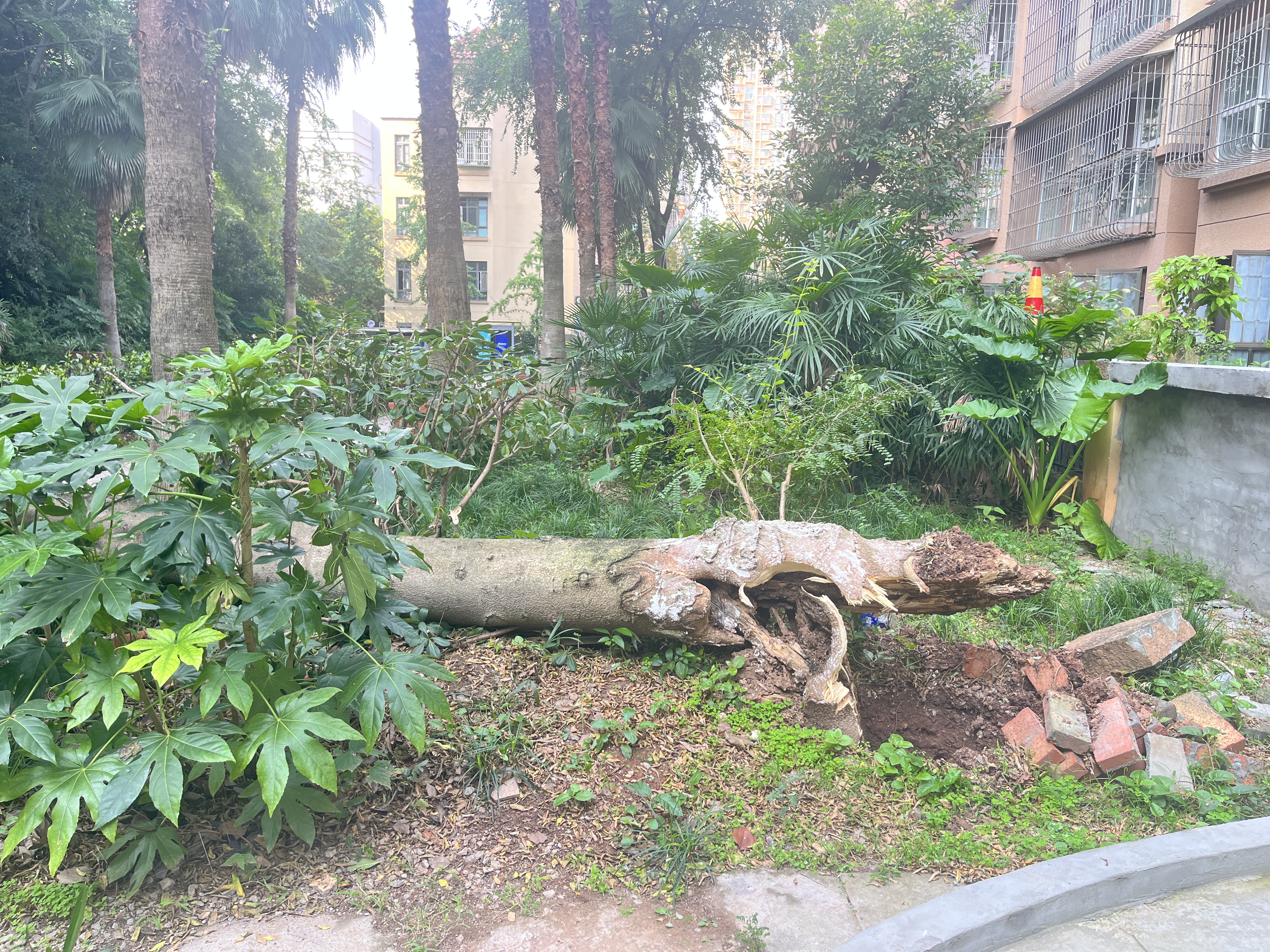 东程配资 资阳一小区树倒砸人后续:现场锯树清障,初步确认 “白蚁蛀根”,正寻除蚁方案