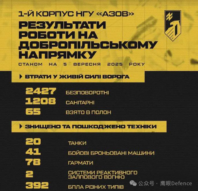 目前战场上最值得关注的地区依然是波克罗夫斯克方向,乌克兰“亚速”第一军团发布的数据显示,在波克罗夫斯克以北地区,近期消灭了2427名俄军,并夺回了6个定居点;而在多布罗皮利亚突出部,俄军总计已损失超过3500人和大量装备。