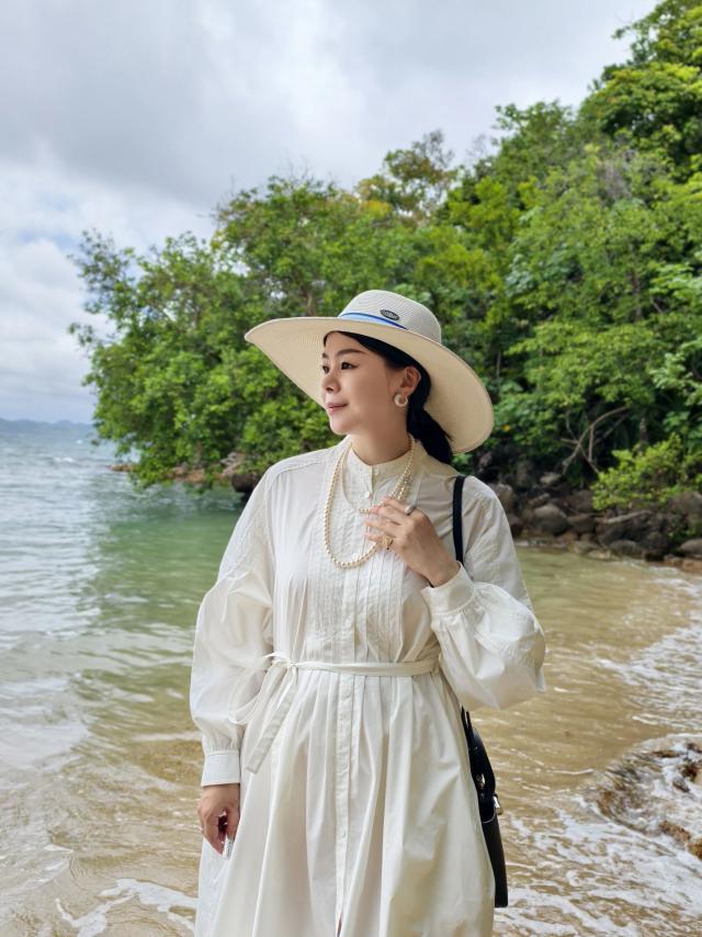 范主最近去巴拉望 Pangatalan 小岛就采用了双圈叠戴法。高低错落的造型很别致,让白色 Look 彰显层次感 ~