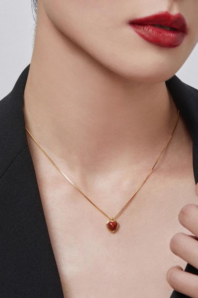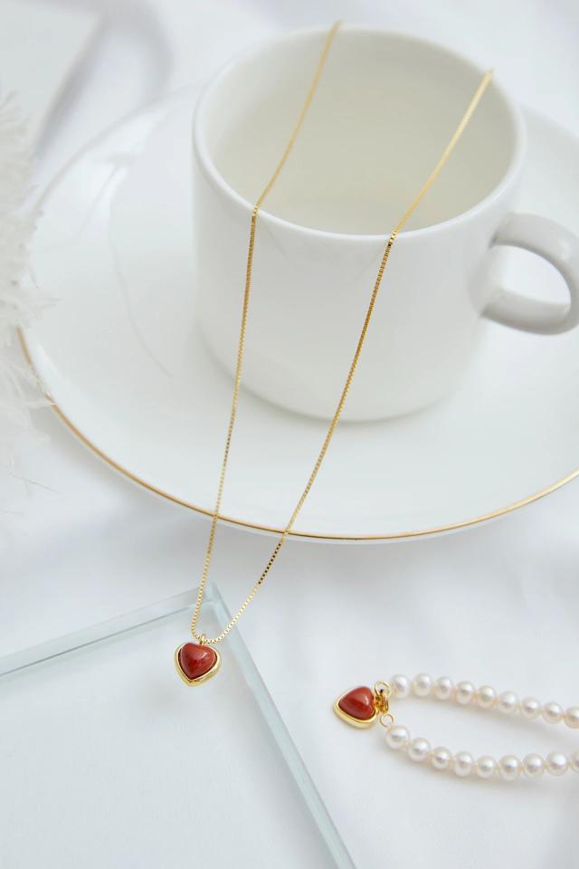 俏皮的 Little Red Heart南红小红心珍珠项链,是一款 4-5mm 的 baby 珍珠项链,在排列紧密有序的珍珠上,加入浓郁的点睛小桃心,南红的质地细腻温润,更有着夺目的光泽,深红色中融入了柿子红的浓郁。划线价 1057 元,现在897 元。