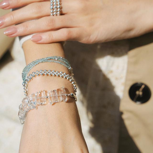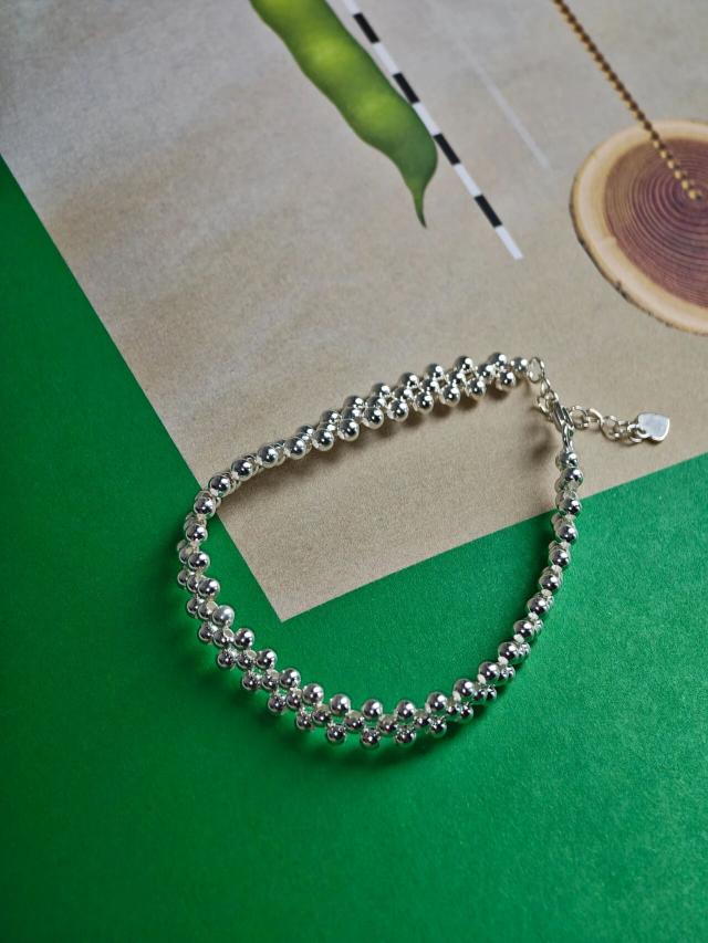 手链的是一条光面的 925 纯银手链,正是这种简约,让它拥有了无限的搭配可能性。光泽也是那种很温润的亮面,不张扬,却高级感十足,在阳光下会泛出柔和的光晕,而在昏暗的灯光下,黑玛瑙又会透出深邃的神秘感。