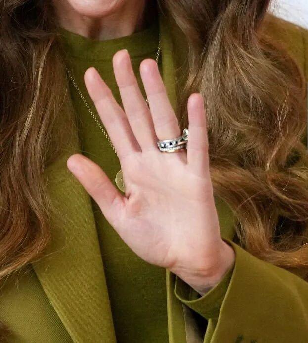 凯特甚至还在手指上同时叠戴了 5 枚戒指——用各种小众品牌的戒指,来给自己的婚戒带来不一样的叠搭乐趣 ~